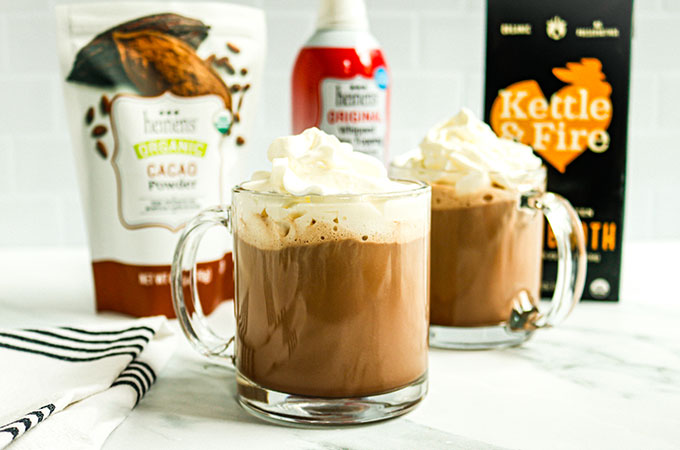 - It’s a chocolatey treat with hidden benefits. This isn’t your average hot chocolate! It’s rich, creamy, and full of deep chocolate flavor, which helps to mask any flavor from the bone broth. You get all the comfort of the classic drink, plus a bonus dose of protein, minerals, and collagen.