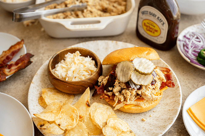 - This DIY Sandwich Bar is impressive to guests, but easy on the host! This recipe has two key steps: cook and shred the chicken and assemble the bar. Once everything is set your job is done and guests can build their own sandwiches with the toppings, sauces, and sides they enjoy. It’s a convenient and customizable meal idea that works for a variety of occasions.