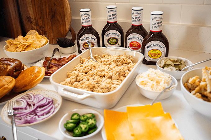 This crowd-pleasing spread features four flavorful Sweet Baby Ray’s barbecue sauces, a colorful mix of fresh toppings, and satisfying sides like Heinen’s Fan Favorite small batch kettle chips, Daily Bites mac and cheese and Heinen’s frozen crinkle cut French fries. All you have to do is lay everything out and let guests build their plates as they please!