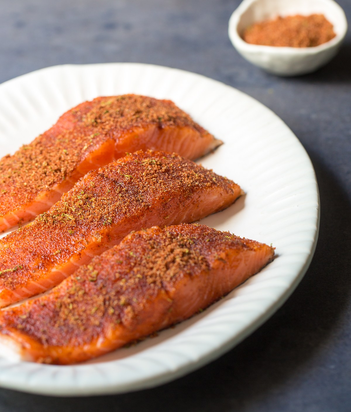 - Rub spice mixture evenly on salmon.