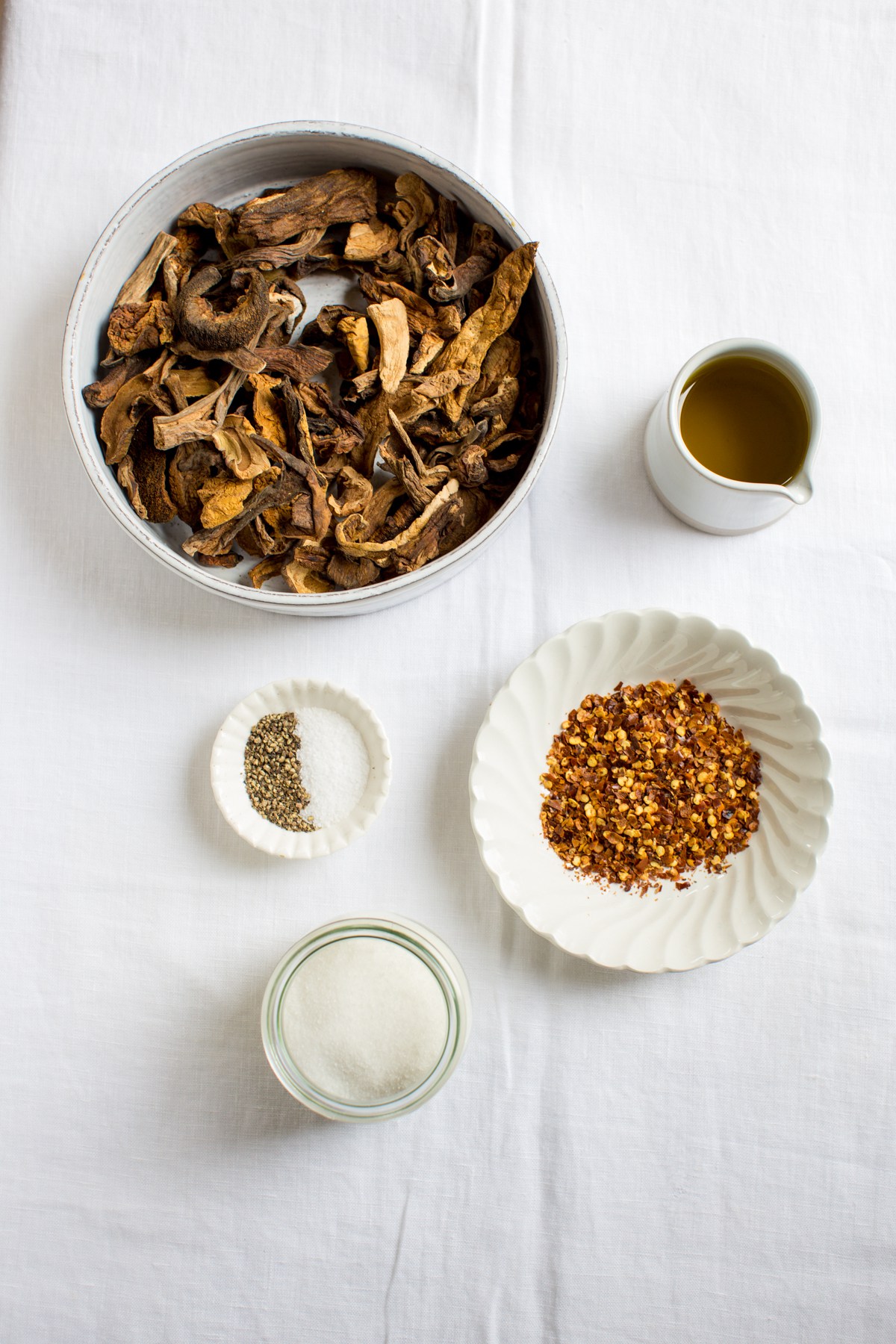 - Add in red pepper flakes and blend to mix. Mix salt, pepper, and sugar together and then add the porcini-chili flake mixture together.