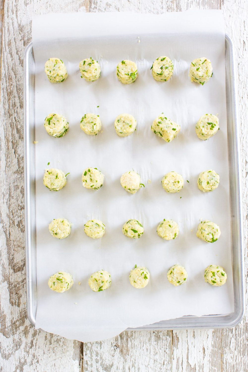 - Shape into tots; place on parchment-lined baking sheet.
