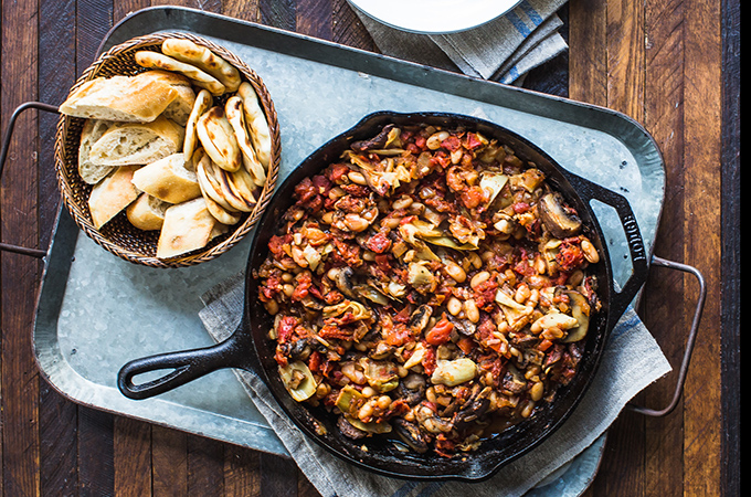 Tuscan White Bean Skillet with Tomatoes, Mushrooms & Artichokes