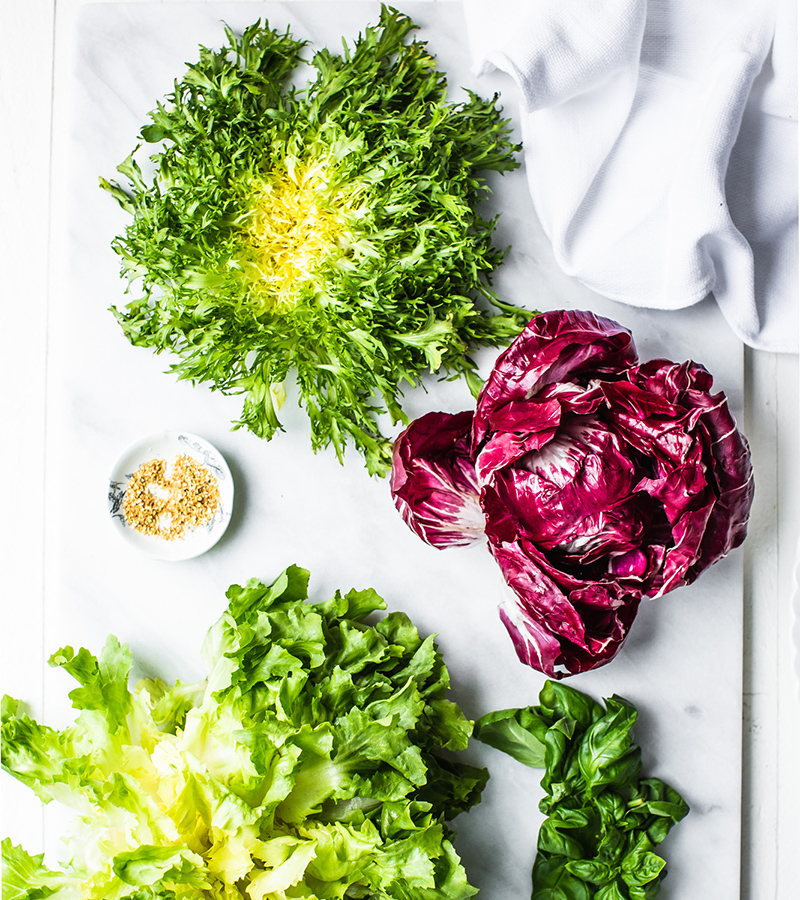 - 1-2 cups assorted winter chicories like frisée, endive and radicchio