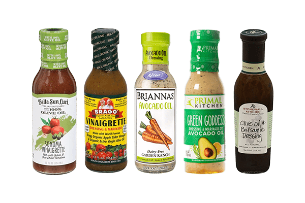 Common ingredients in many bottled salad dressings are seed oils (sunflower, canola, corn, and soybean) and added sugar. Dress your holiday salads with one of these healthier alternatives made from extra virgin olive oil or avocado oil: