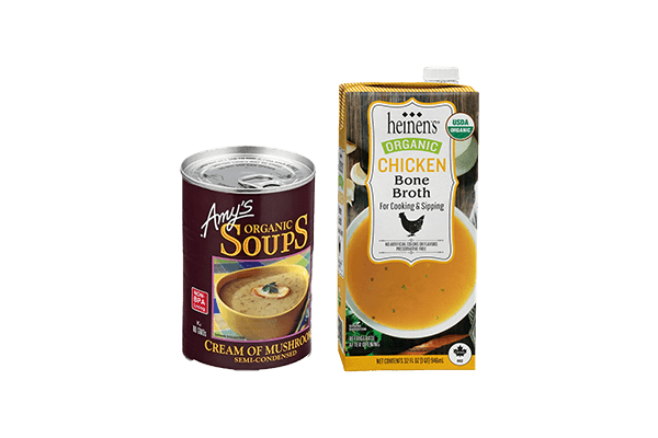 Most brands of canned mushroom soup have ingredients that your body does not need such as canola oil, MSG (monosodium glutamate), and soy protein concentrate! Skip these ingredients and upgrade your green bean casserole with Amy’s Kitchen organic cream of mushroom soup.